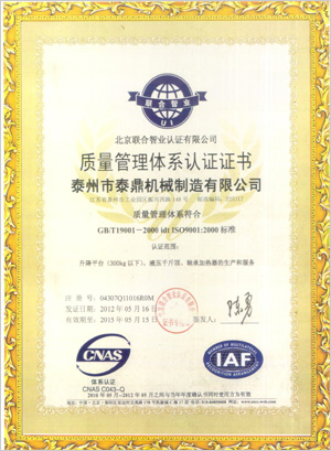 ☆ 质量体系管理认证 ☆ 特种设备许可证