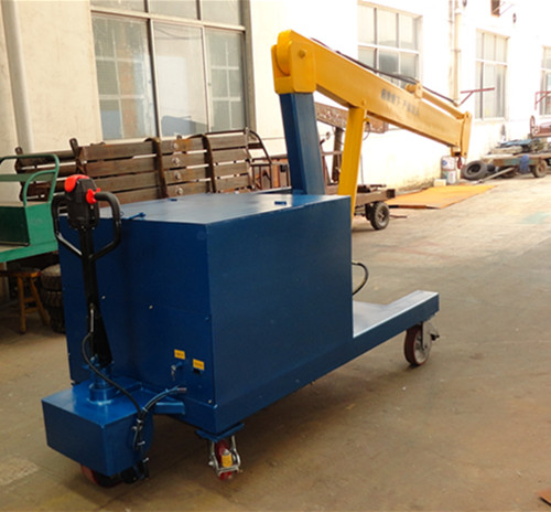 :有1T、1.5T、2T,起升高度3米,吊臂长度套筒式,有1.9米-2.5米,油泵电机功率3KW,驱动电机功率1.2Kw,24V直流电机,安全可靠。由驱动轮、蓄电池、充电器、减速机,离合器、制动器,提升泵、电控总成、手柄总成等组成的无须外接电源,无须人工牵引的自行走吊车。另有全自动吊车、半电动吊车、手动液压小吊车等,亦可非标订制。